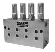 该型分配器适用于公称压力为40MPa 的双线式干油集中润滑系统中,它在两条供油主管交替的供油压力作用下,直接由供油压力控制活塞动作给油,完成向润滑点定量分配润滑脂的功能。
