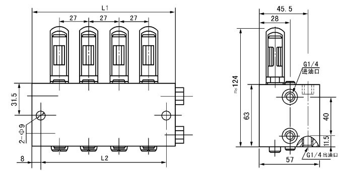 分配器适用于公称压力为40MPa的双线式干油集中润滑系统中。它在两条供油主管交替的供油压力作用下,直接由供油压力控制活塞动作给油,完成向润滑点定量分配润滑脂的功能。