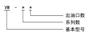 VW系列分配器适用于公称压力为20MPa双线式干油集中润滑系统中。它在两条供油主管交替的供油压力作用下,直接由供油的压力控制活塞动作给油,完成向润滑点定量分配润滑脂的功能。
