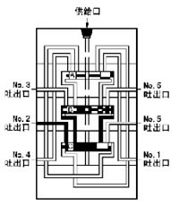 4、流入的润滑剂推动活塞A向左移动、左腔的润滑剂压向NO.3吐出口经外部配管送向润滑点。当活塞A运动至左极限时活塞C右腔开始进入润滑剂。